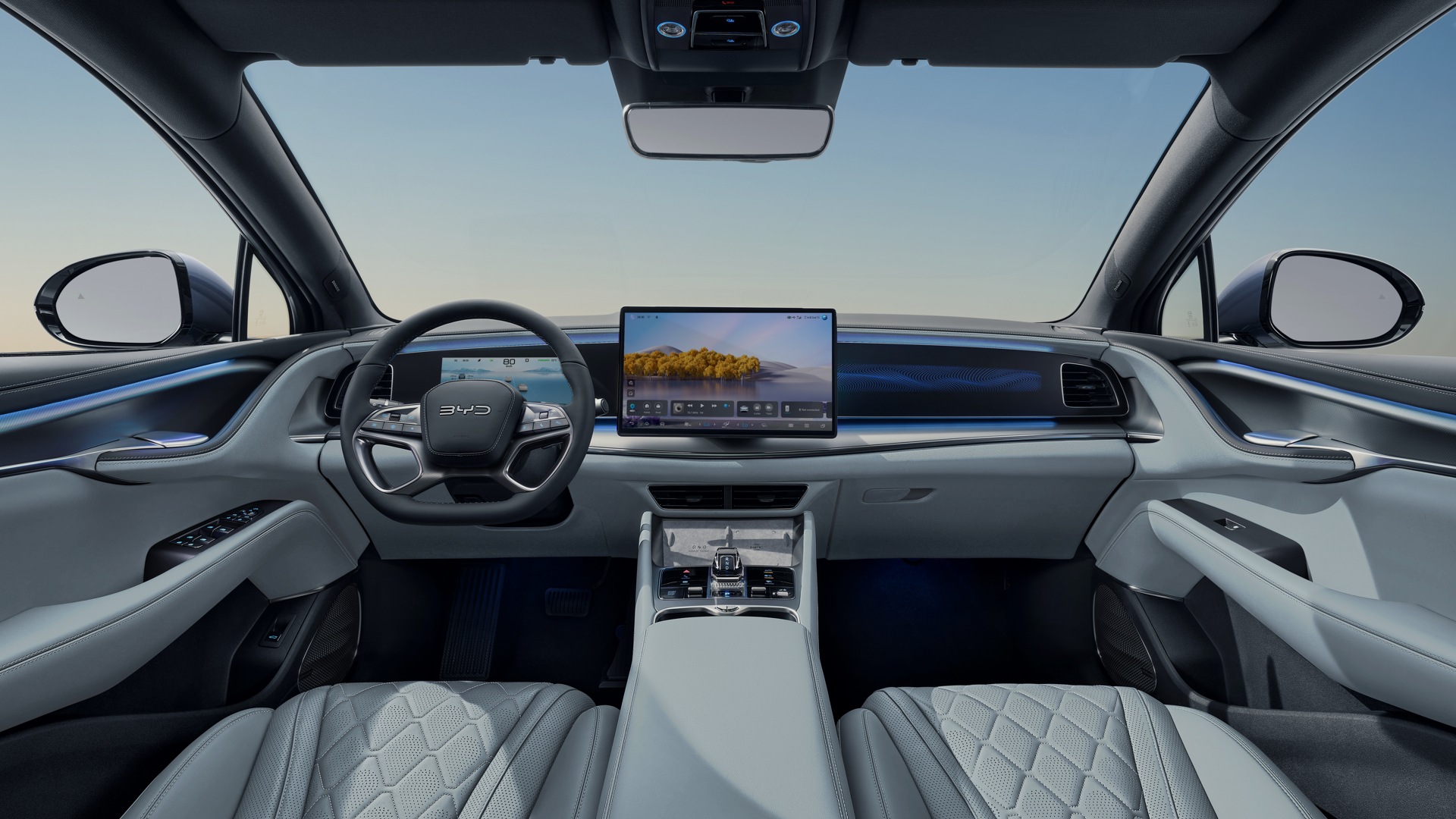 Inspirado en el flujo dinámico y la velocidad de las regatas de vela, el interior del BYD SEALION 7 transmite una sensación de movimiento, suspensión y amplitud. Este diseño crea una atmósfera cohesiva e inmersiva, donde cada elemento parece flotar en armonía con las olas.